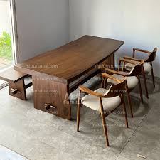 Set meja makan alamai kayu trembensi ini menggunakan bahan baku kayu termbesi utuh (suar wood)